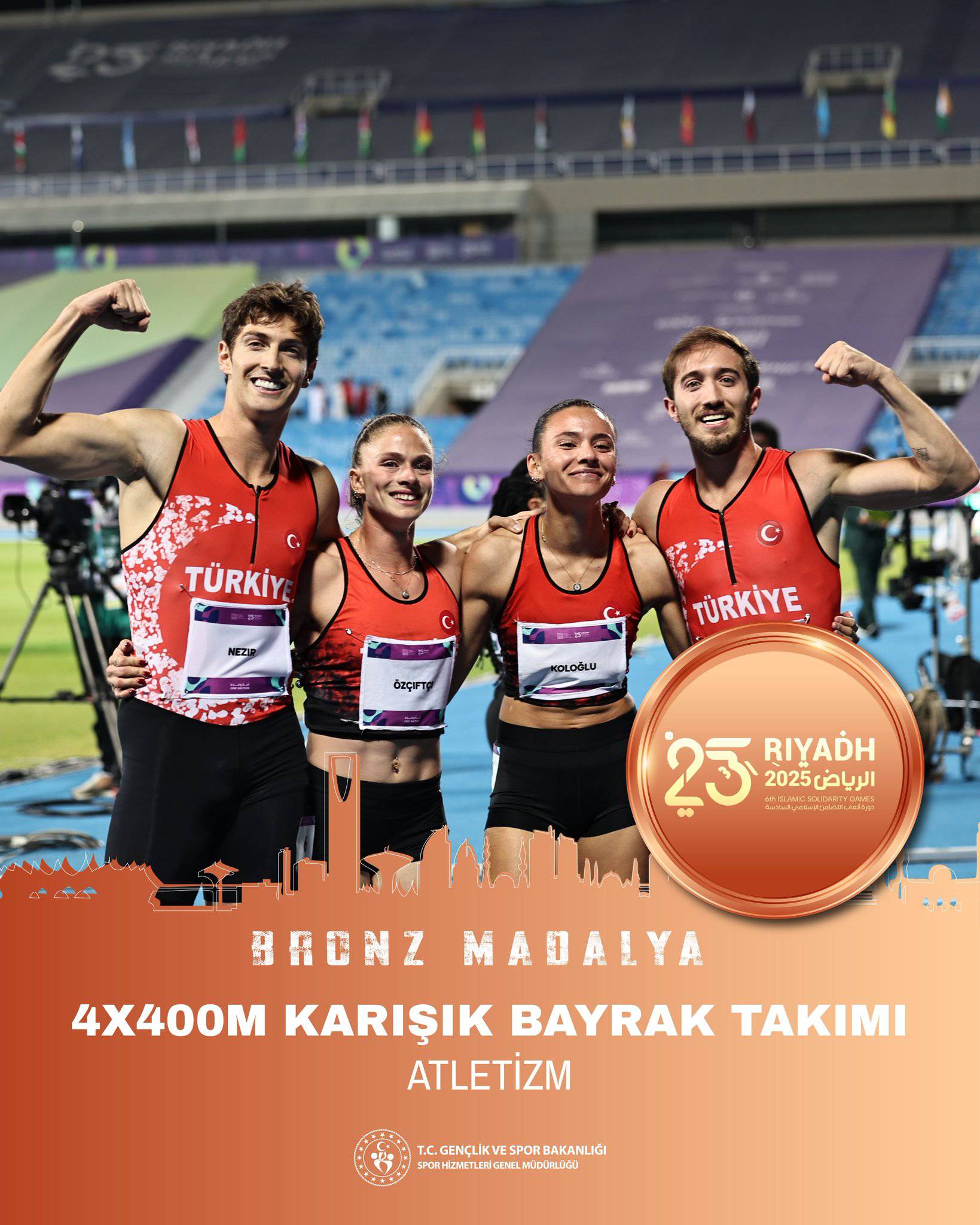 Gülle atma finalinde yarışan milli atletimiz Emel Dereli, sergilediği etkileyici performansla altın madalyanın sahibi oldu. Organizasyonun bir diğer altın madalyası ise Kadın Hentbol Milli Takımımızdan geldi. Millilerimiz tüm rakiplerini geride bırakarak şampiyonluğa ulaştı.Atletizmde mücadele eden 4x400m Karışık Bayrak Takımımız ise İsmail Nezir, Simay Özçiftçi, Berke Akçam ve Sıla Koloğlu’ndan oluşan güçlü kadrosuyla yarışmayı üçüncü sırada tamamlayarak bronz madalya kazandı.Millilerimiz, farklı branşlarda elde ettikleri derecelerle oyunlarda Türkiye’nin gururu oldu.
