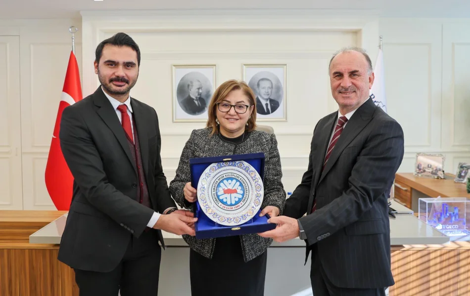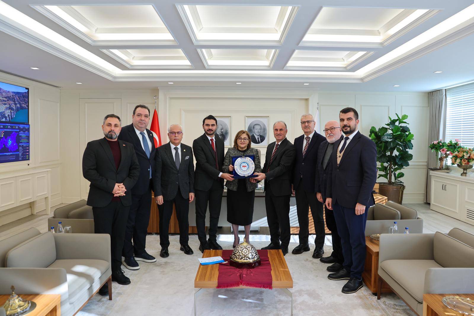 Gaziantep Büyükşehir Belediye Başkanı Fatma Şahin'i ziyarette; Genel Başkan Şener Aydın, Genel Başkan Vekili ve Konya ASKF Başkanı Remzi Ay, Genel Sekreter Abdullah Albunar, Genel Başkan Yardımcısı ve Adana ASKF Başkanı Ahmet Bozan, Gaziantep ASKF Başkanı Av. Ömer Alper Köroğlu ile Gaziantep ASKF Yöneticileri hazır bulundu.