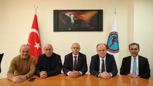 Türkiye Amatör Spor Kulüpleri Konfederasyonu (TASKK) Genel Başkanı Şener Aydın, beraberinde Genel Başkan Vekili Remzi Ay ve Genel Sekreter Abdullah Albunar ile ..