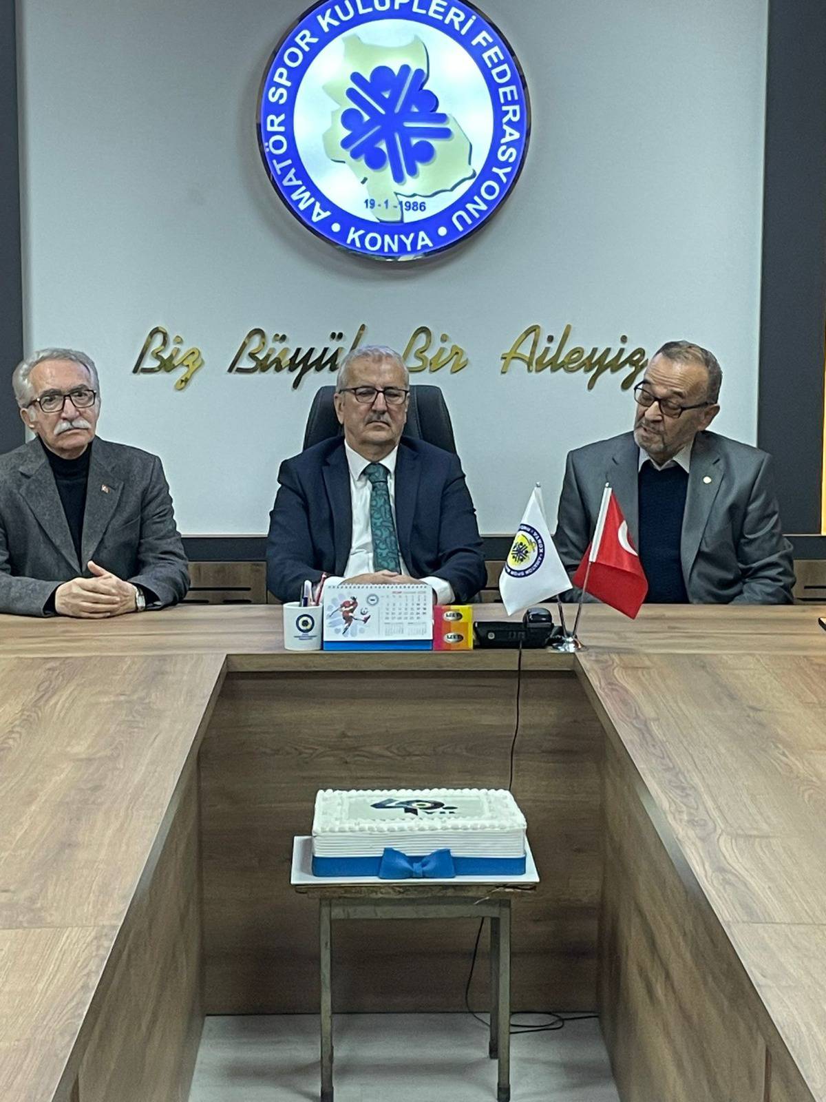 Konya ASKF Başkanı Remzi Ay ile yönetim kurulu üyeleri, önceki dönem Başkanlardan İbrahim Karaca ve 1986 yılında ki kurucu kulüp delegeleri; Tek Meramspor’dan Mustafa Erişen, İhsaniye Gençlerbirliği’nden Ali Çomak, Derespor’dan Mehmet Balaban ve Karabağ Gençlerbirliği’nden Adem Bestil’in katılımıyla gerçekleşen programda 40. yılını pasta keserek kutladı.