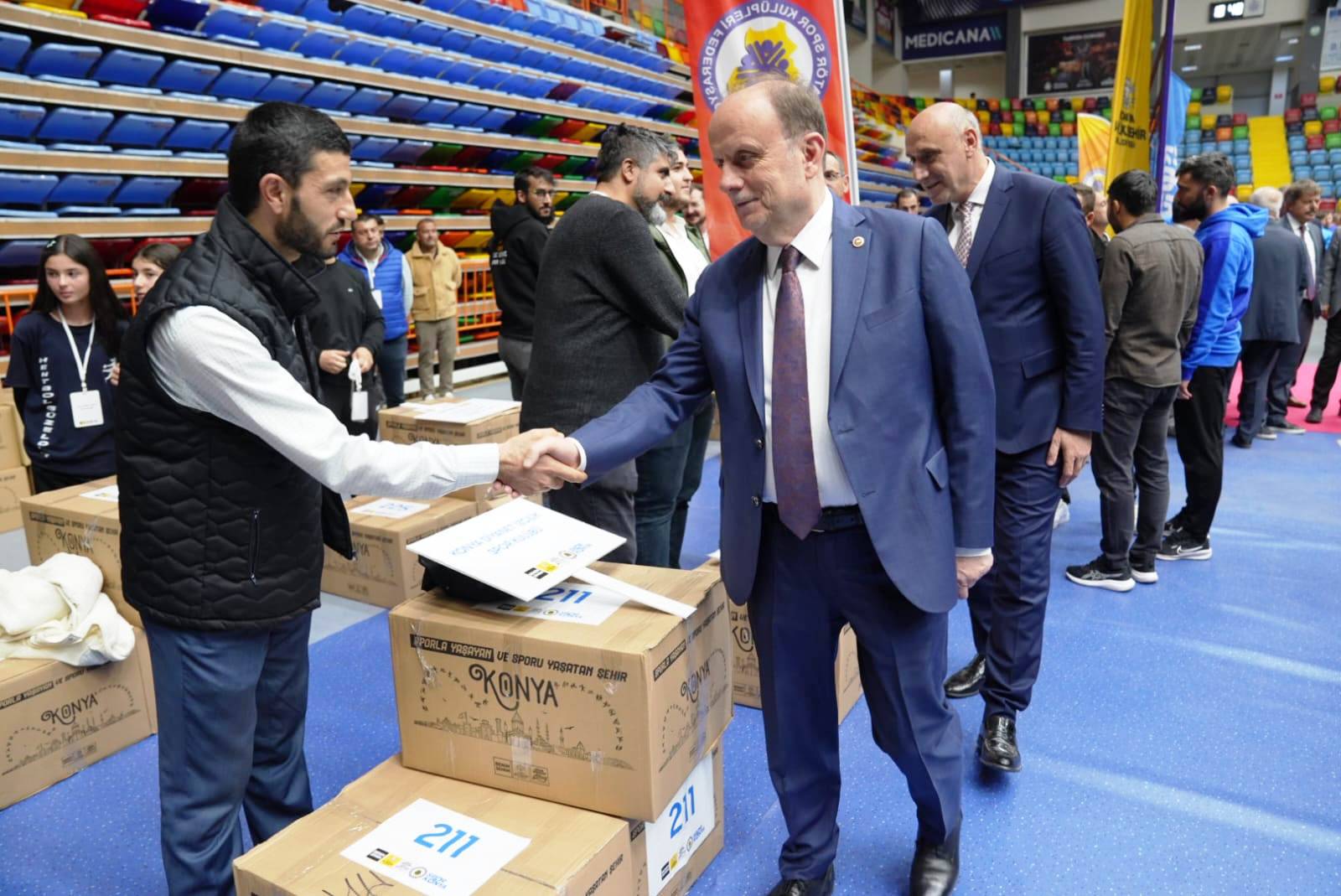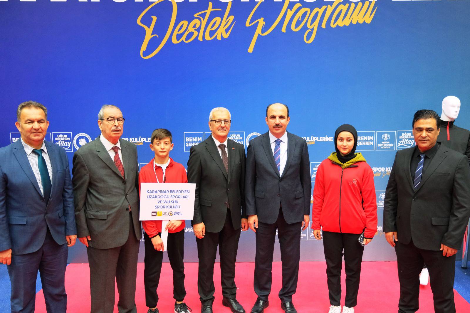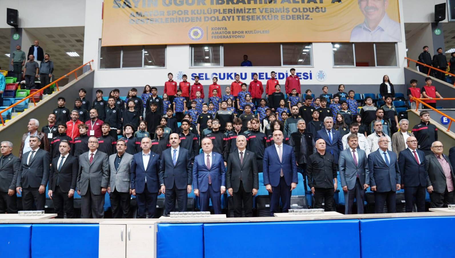 Selçuklu Belediyesi Uluslararası Spor Salonu'nda gerçekleştirilen malzeme dağıtım törenine; AK Parti Konya Milletvekili Mehmet Baykan, Konya Büyükşehir Belediye Başkanı Uğur İbrahim Altay, Konya Gençlik ve Spor İl Müdürü Birdal Öztürk, TASKK Genel Başkan Vekili ve Konya ASKF Başkanı Remzi Ay, yönetim kurulu üyeleri, Konya GSİM şube müdürleri, kulüp yöneticileri, antrenörler, sporcular, yerel basın ve misafirler katıldı.