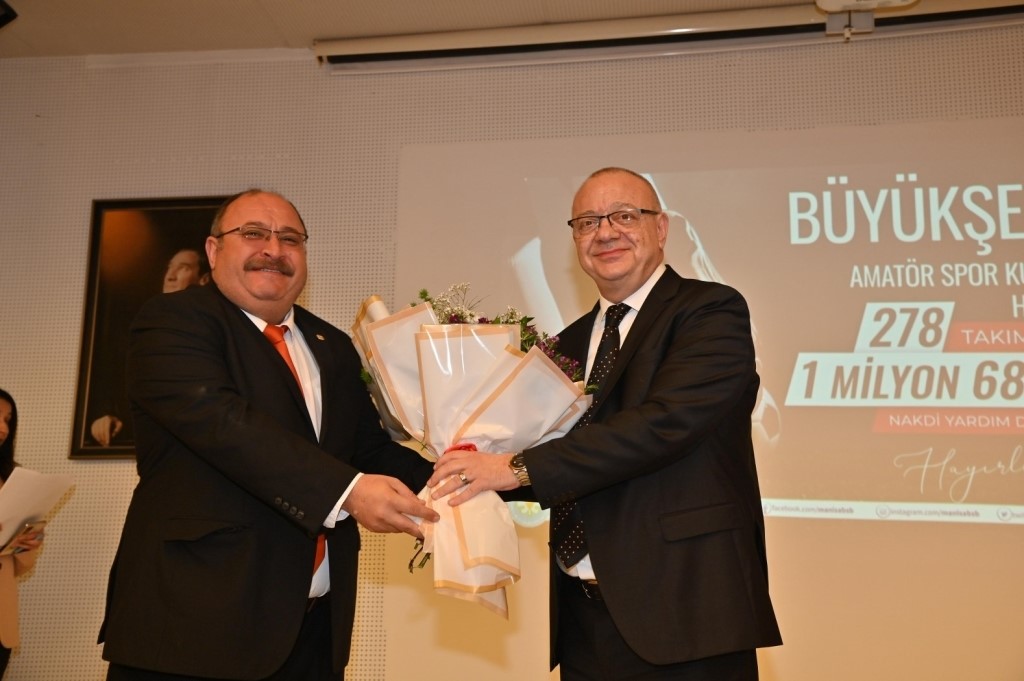 Timur’un ardından kürsüye davet edilen Manisa Büyükşehir Belediye Başkanı Cengiz Ergün, Büyükşehir Belediyesi olarak her zaman sporun ve sporcunun yanında olduklarını vurguladı. Başkan Ergün, “Göreve geldiğimiz ilk günden bu yana tesisleşmeye yönelik hamlelerimize; gençlerimizin ve çocuklarımızın spora teşvik edilmesine yönelik projelere büyük önem verdik. İstedik ki; bu şehirde yaşayan her çocuk sporla ilgilensin ve kötü alışkanlıklardan uzak dursun. Bu noktada sizler de bu anlayışımıza sunduğunuz hizmetlerle ciddi katkı sağlıyorsunuz. O açıdan bu şehrin gençlerine ve çocuklarına spor yapma imkanı sunduğunuz için her birinize Manisalı hemşehrilerim adına ayrı ayrı teşekkür ediyorum. Sporun içinden gelen bir yönetici olarak her zaman sizlerin yanında olmaya, sizlere destek vermeye devam edeceğimden şüpheniz olmasın” dedi.