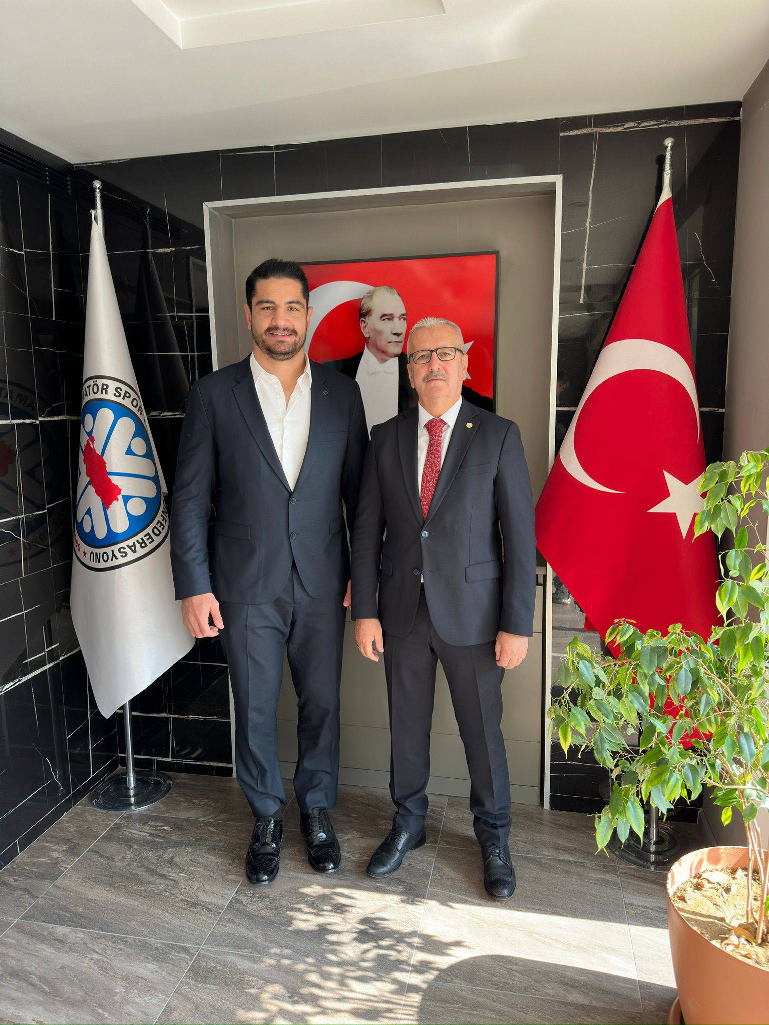 Serbest stil 125 kiloda mücadele eden, 3 kez dünya 11 kez Avrupa Şampiyonu olan, 2016 Yaz Olimpiyatları’nda altın, 2020 Yaz Olimpiyatları’nda bronz ve 2024 Paris Olimpiyatları’nda bronz madalya kazanan eski güreşçi Taha Akgül, Konfederasyonu ziyaret etti.