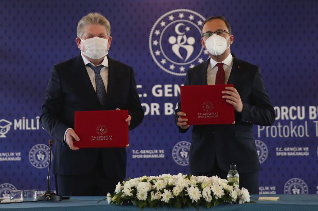 ”Sporcu önemli bir alın teri önemli bir emek harcıyor, bu çerçevede tabii ki okul, ders ve gerekli ölçüde vakit ayırma noktasında doğal olarak bir sıkıntı yaşıyor. İşte bu sorunu ortadan kaldırmak, bu çerçevede ‘ben okula mı devam edeyim, spora mı devam edeyim’, ikilemini bertaraf etmek noktasında başlatılan bu adım inşallah bugünkü sözleşmeyle birlikte daha farklı bir noktaya gelecek. İnanıyorum ki bu süreci el birliğiyle çok çok daha yukarılara taşıyacağız. Hem sporu hem eğitimi bu anlamda hedef belirlemiş gençlerimizle bu ülkenin aydınlık yarınlarına daha güçlü bir şekilde yürümüş olacağız.” “Sporcu bursluluk kapsamını sadece üniversitelere değil ortaokul ve liselere birlikte yaymış olacağız”