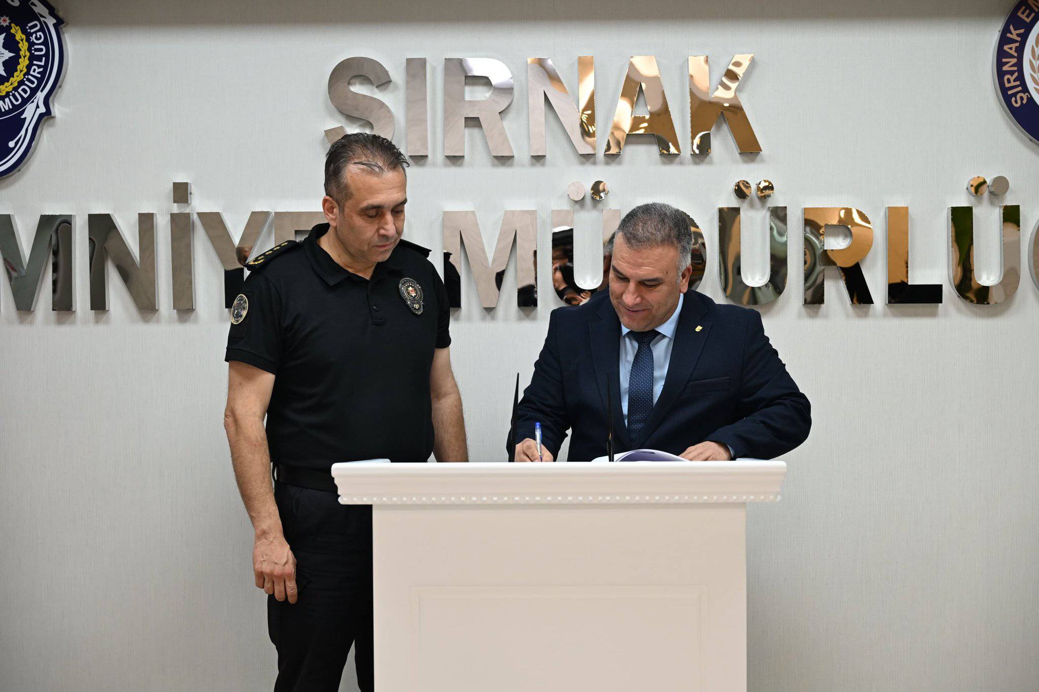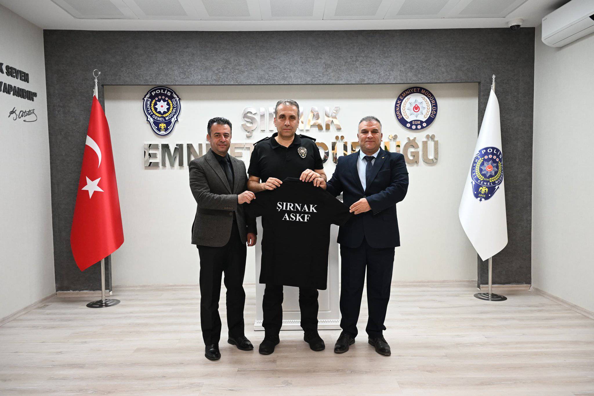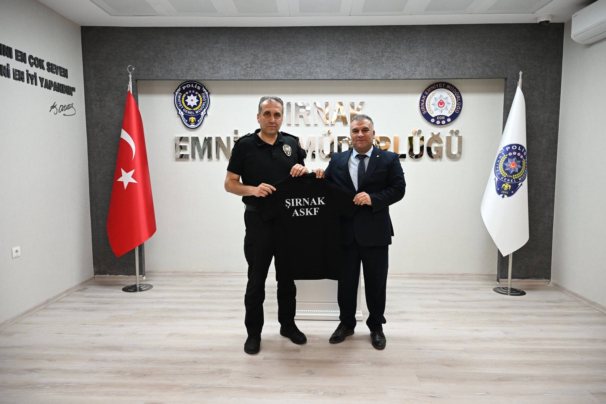 Ziyarette, Şırnak Amatör Spor Kulüpleri Federasyonu Başkanı Murat Umaç, Şırnak amatör sporuna verdiği katkılardan dolayı Şırnak İl Emniyet Müdürü Volkan Sazak’a teşekkür etti.