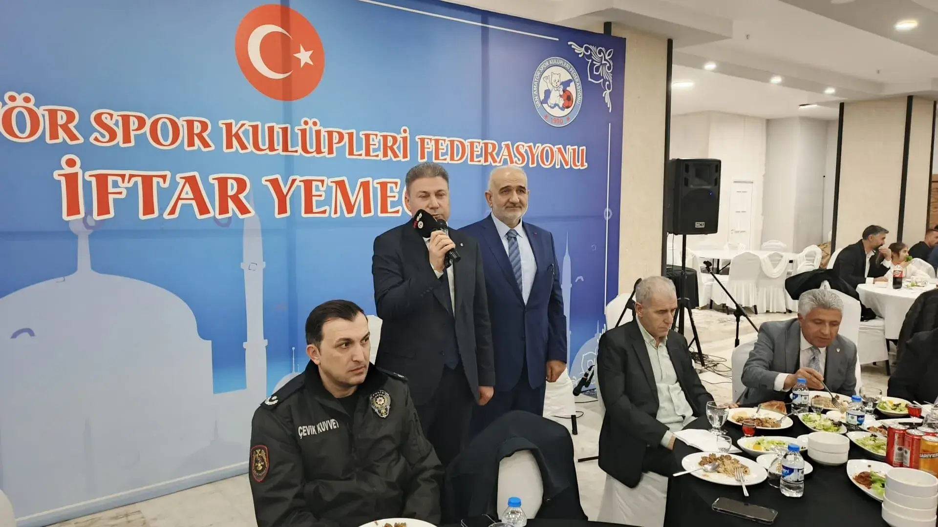 Van ASKF tarafından düzenlenen geleneksel iftar programına; Gençlik ve Spor İl Müdürü Mehmet Tosun, Tuşba İlçe Müdürü Hüseyin Esen, Edremit İlçe Müdürü Hakan Gündoğdu, Bölgesel Kurul Üyesi Zafer Korkmaz, Van Emniyet Müdürlüğü Spor Şube Müdürü Ali Bayhan, Polis Gücü Spor Kulübü Başkanı Taner Coşkun, Van Futbol İl Temsilcisi Vedat Balkış, Van Spor FK’nın efsane isimleri Turgay Karatekin, Mehmet Tuğrul, Zeki Yılmaz, Hakem ve Gözlemciler Dernek Başkanı Erkan Odabaşı ile amatör kulüp temsilcileri ve çok sayıda spor emekçisi katıldı.